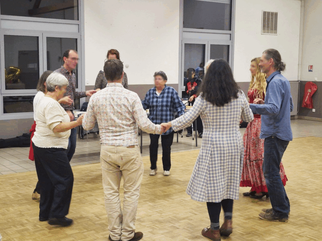 Le répertoire du bal folk est axé sur la danse avec des titres comme Echu eo a mare (hanter dro), The star above the gartner/Eibhlín Ní Riordáin’s (slide dansé en chapelloise), Tri martelod (andro), un medley de reel (Mc Auley’s / Upstairs in a tent / Toss the father dansés en mixer), Sonny’s mazurka, plusieurs suites de jigs à danser en cercle circassien et bien d’autres…
